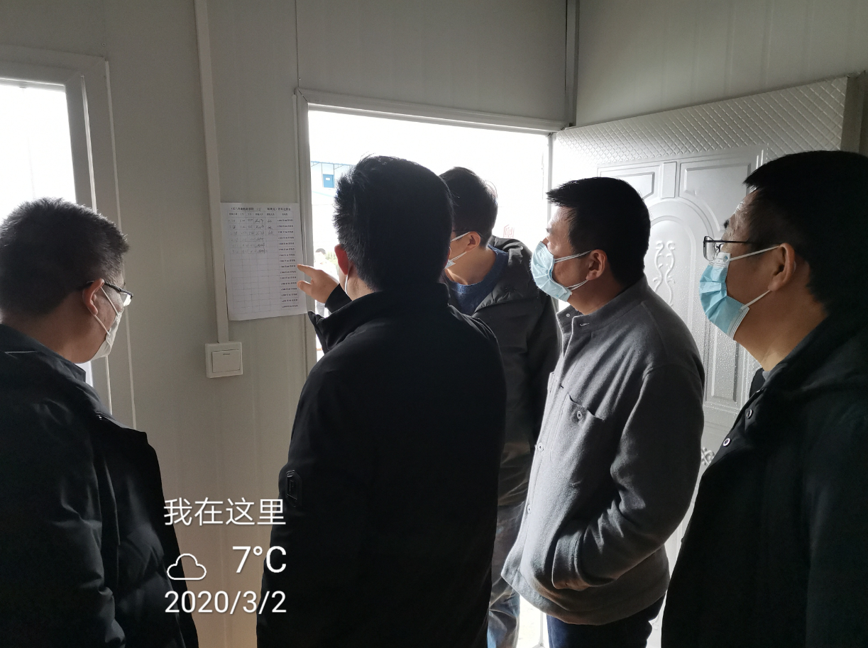 王處長檢查并詢問了施工現場的出入口疫情防控管理措施;應急設施是否到位,是否具備應急隔離間和普通隔離間;防疫物資儲備是否齊全到位,滿足項目需求。