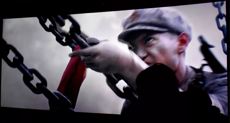整部電影沒有高亢激昂的對白,但卻處處催人淚下。為了贏取革命的勝利,紅軍戰士們不畏艱險,勇往直前。小時候學習過一篇課文叫做《瀘定橋》,今天在電影畫面里我見到紅軍們攀爬鐵索橋的情景,槍林彈雨從耳邊呼嘯而過,大渡河水川流不息。但堅定的意念使這群勇士們勇往直前,一個掉下去了,下一個又沖上來,拋頭顱,灑熱血,只為一顆初心,一份信念。