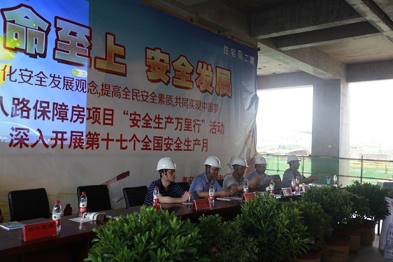 正值全國第十七個“安全生產(chǎn)月”,此次安全專項活動本著“生命至上、安全發(fā)展”的理念,為推動安全生產(chǎn)重點工作落實,推動安全理念深入人心,6月26日上午,西安市住房保障和房屋管理局在丈八路保障房建設(shè)項目一線施工現(xiàn)場開展了2018年“安全生產(chǎn)萬里行”專項安全教育活動,聚焦責任落實、科技強安、依法治安等方面的重點內(nèi)容。 西安市第二住宅建筑公司積極承辦了此項活動,參加本次活動局屬房管處、保障處和保障中心的有關(guān)負責同志,還有開發(fā)總公司、經(jīng)營一公司、經(jīng)營二公司、經(jīng)營三公司、工商業(yè)經(jīng)營公司、住宅一公司、林華監(jiān)理等單位負責安全管理的人員以及項目部各施工班組共計410余人。同時邀請中國安全健康教育中心安全應(yīng)急科專職教官作了現(xiàn)場指導(dǎo)。
